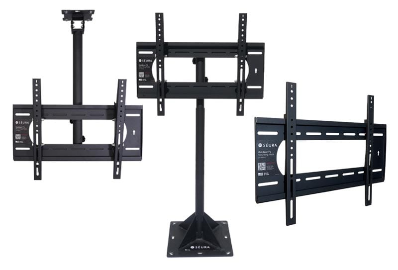 Complete your Outdoor TV setup with a front-facing weatherproof outdoor soundbar that projects sound toward you to deliver rich, powerful audio. Plus, choose from Séura’s weatherproof wall mounts, ceiling mounts, and floor stands for a durable outdoor mounting solution.