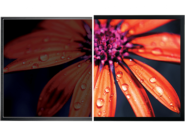 Color-calibrated for the optimal picture in shade or full sun, Séura Outdoor TVs are the brightest in their class. Séura Full Sun Series leads with the best picture at 2000-nit brightness and Shade Series is 35% brighter than the competition in the shaded outdoor category, measured at the peak 100% window and compared to the SunBrite Veranda 3.