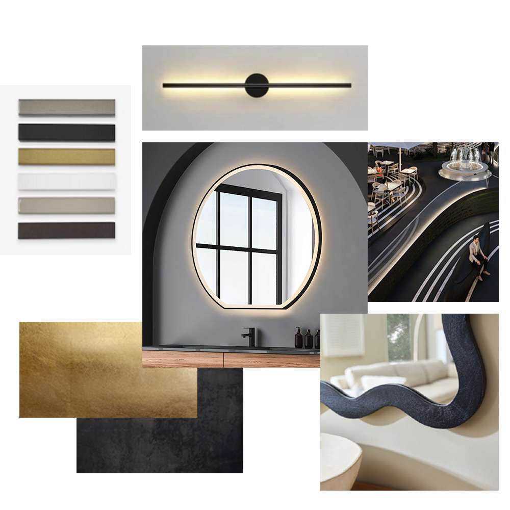 Séura’s Geo Collection evokes the elemental, crystalline structure of stone. The custom mirror patterns are geometric but not rigidly structured, providing a unique and captivating contribution to designs that blend well-defined lines with organic features.