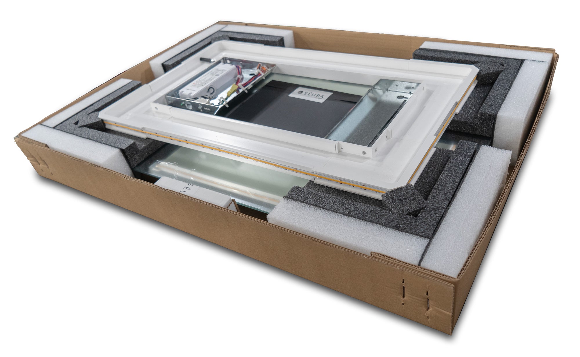 Séura mirrors manufactured in our Wisconsin facility will arrive in a flat box, customized to the size of your mirror.