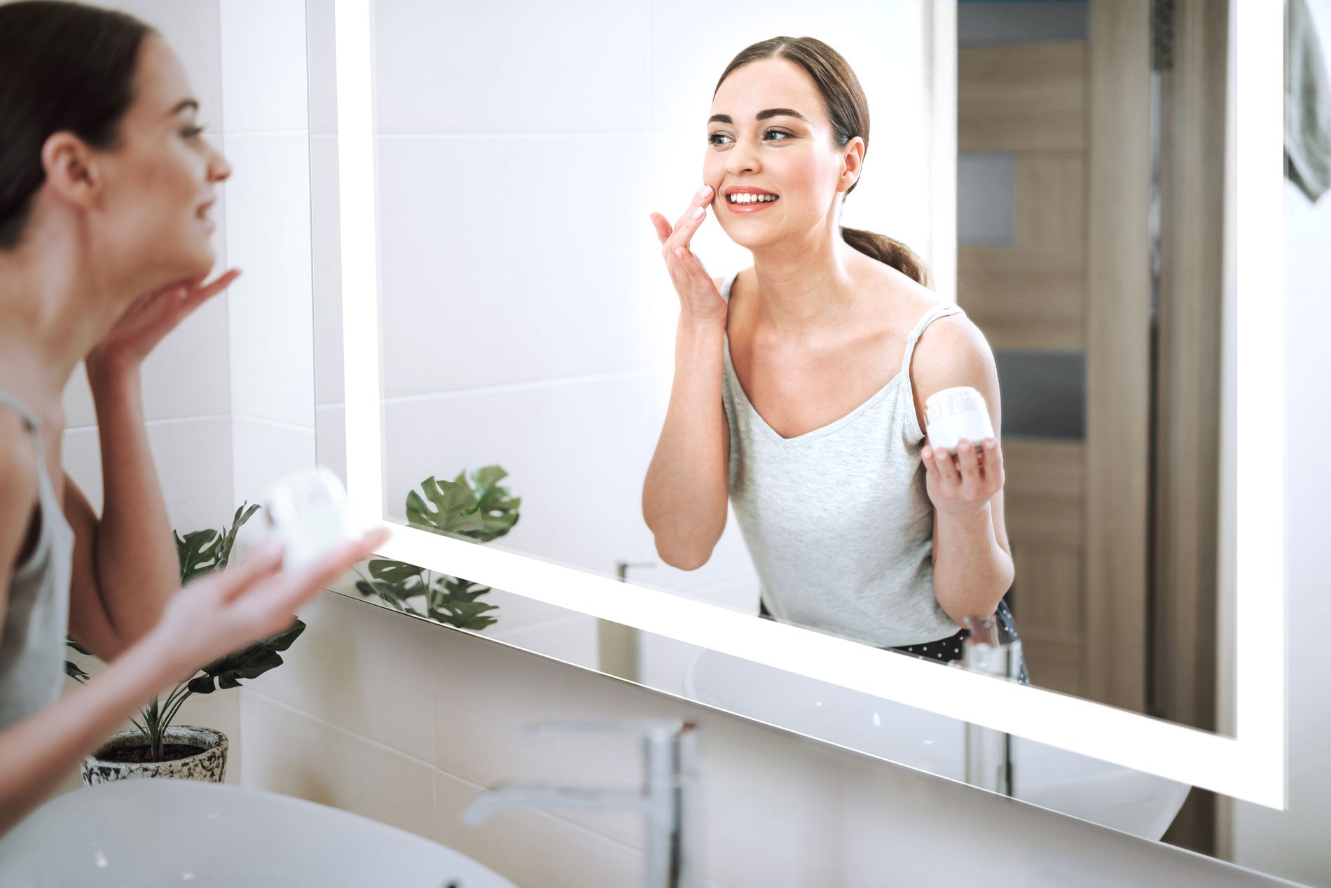 Lighted mirrors offer the best light to evenly illuminate the user’s face.