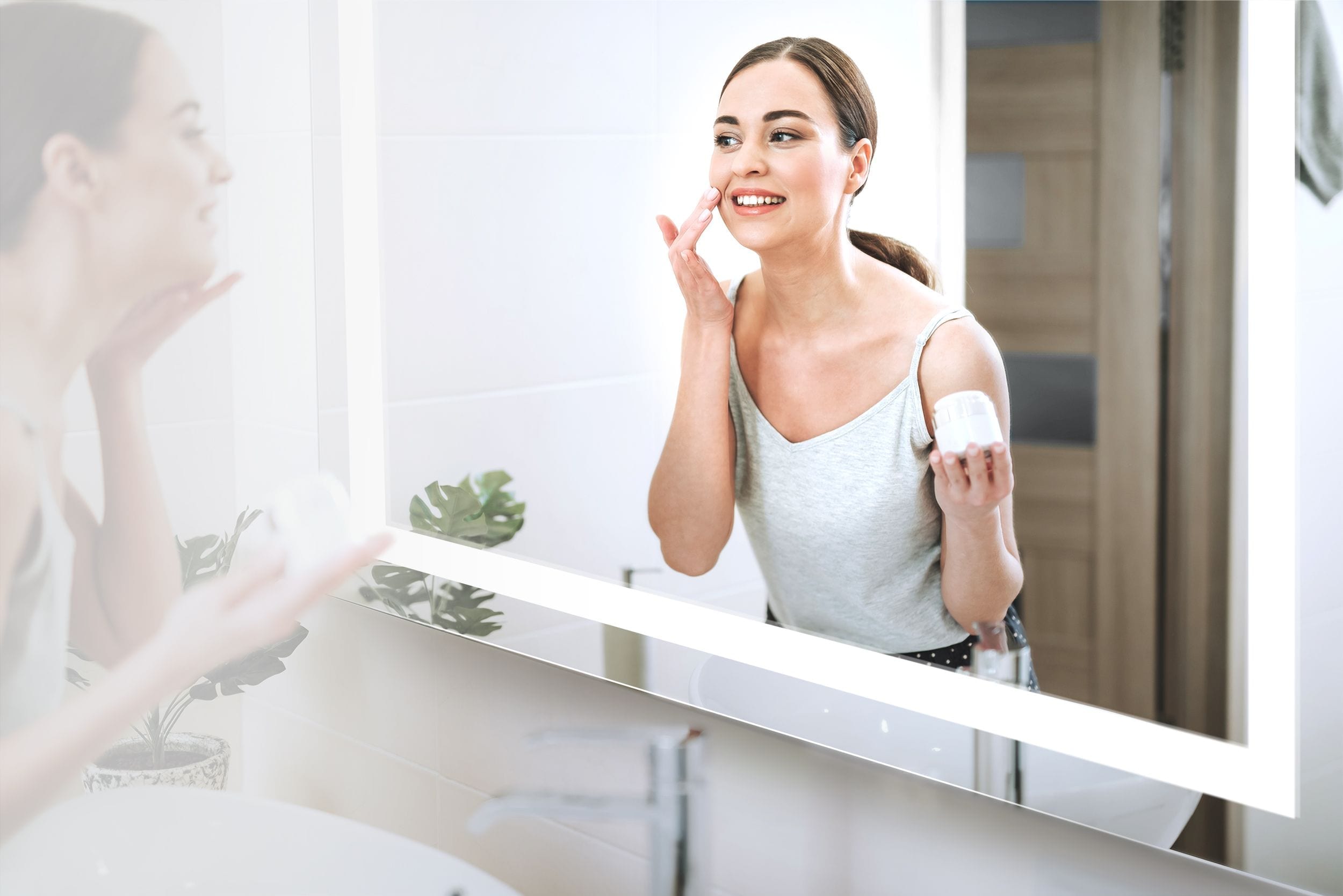 Lighted mirrors offer the best light to evenly illuminate the user’s face.