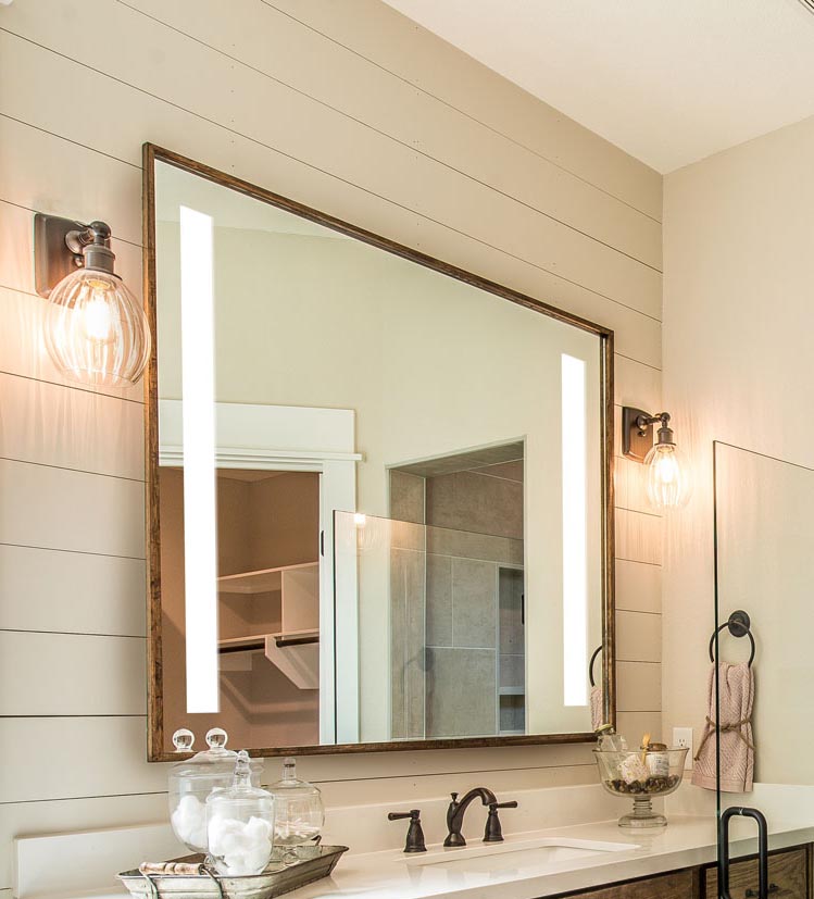 Lighted mirrors offer the best light to evenly illuminate the user’s face.