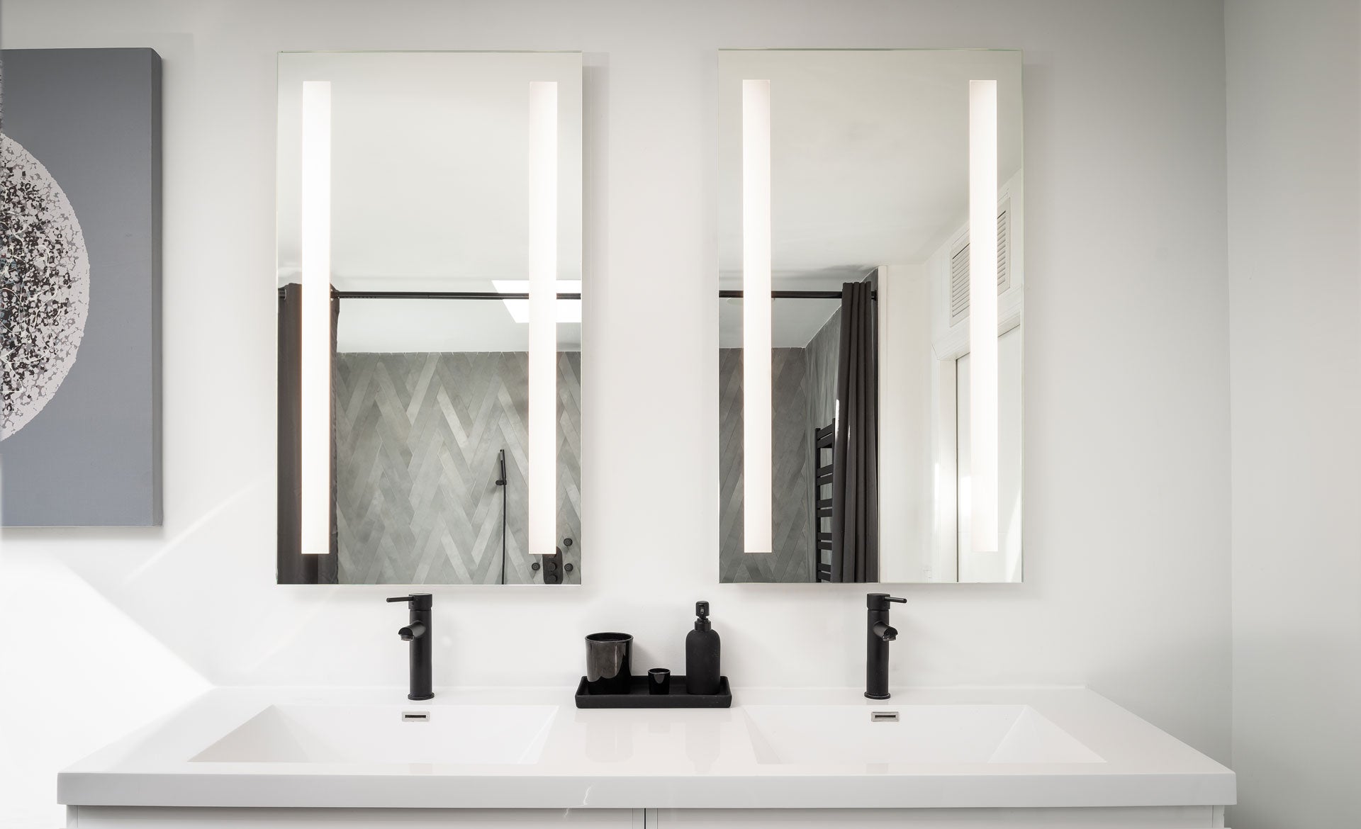 Meet the sophisticated lighting that balances the room with your mood. Séura’s lighted mirrors are dimmable to adapt to every changing moment of your day. Conveniently change the intensity level anywhere from dreamy low-light to reviving brightness. Upgrade to Touch Control Dimming to adjust brightness from the mirror with one touch.